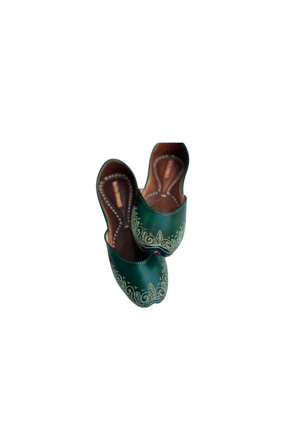 Step into a world of understated luxury with The Royal Huntsman Juti. Designed for the modern heir with a classic soul, this distinguished pair is crafted from plush, deep forest green velvet. The entire upper is adorned with an elegant, tone-on-tone diamond quilting, adding a rich texture and a look of padded comfort without the need for overt embellishment. It's a sophisticated and unique choice, perfect for Mehendi ceremonies, festive soirees, and for the gentleman who commands style with quiet confidence.